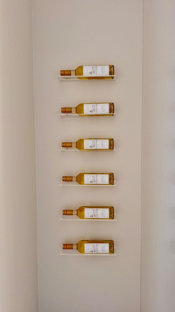 De houders zijn geschikt voor in de keuken en woonkamer, maar ook in een wijnkelder. Het staal is afgewerkt met een witte poedercoating.